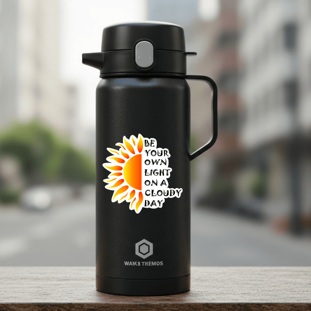 «Be your own light on a cloudy day» – Sticker digital motivacional sol inspiracional
