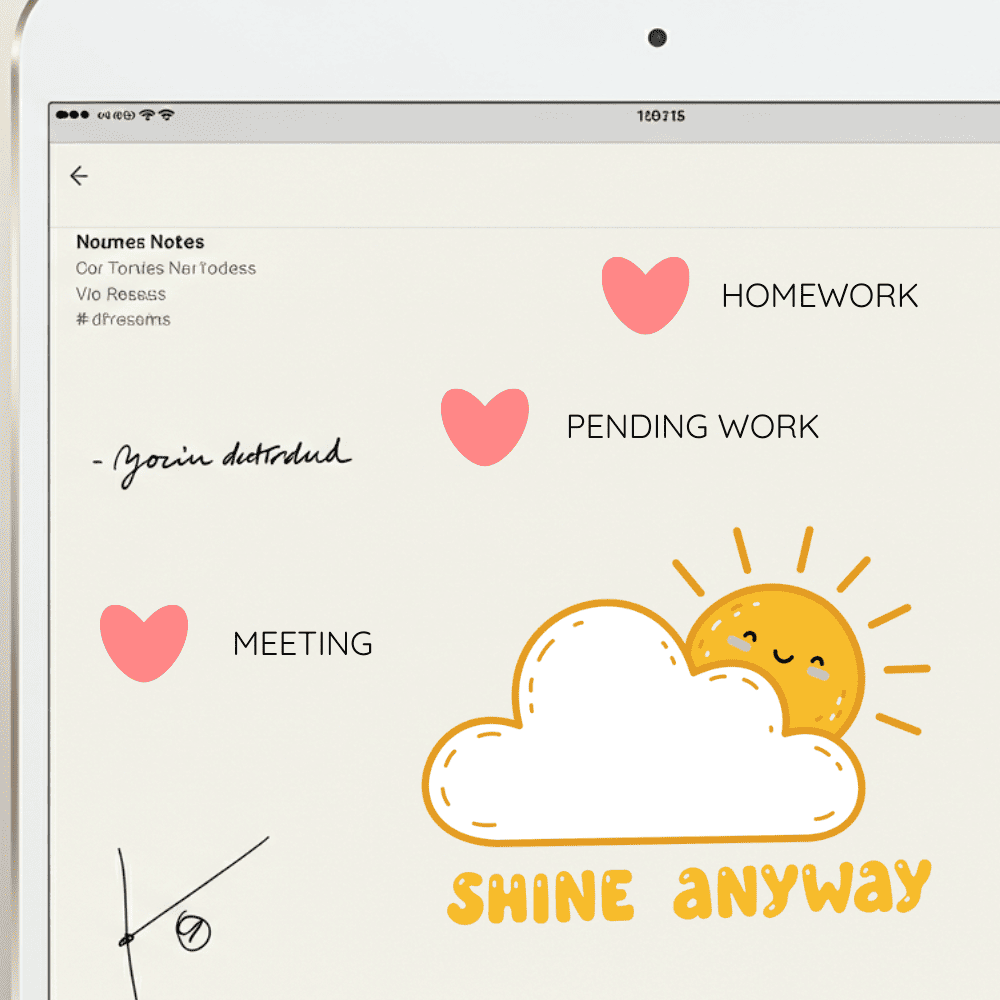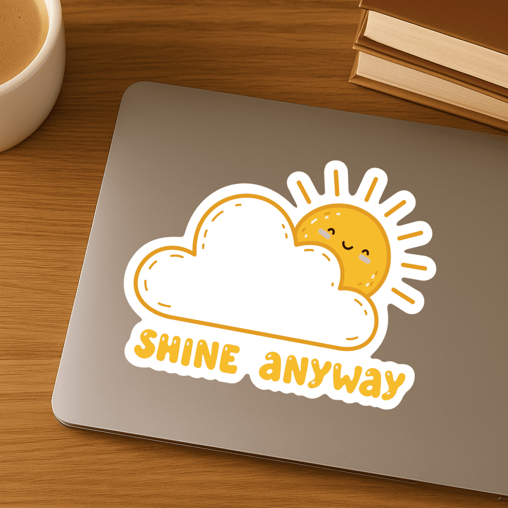 A veces la vida nos presenta días nublados, pero siempre podemos elegir brillar. Este sticker digital kawaii con mensaje «Shine Anyway» te recuerda que está bien empezar sin estar completamente listo y que tu luz interior no depende de las circunstancias. Descarga instantánea PNG para personalizar tus espacios con amor propio.